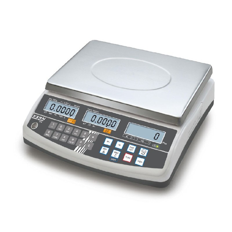 Cantarul Kern & Sohn CFS este un cantar cu functie de numarare ce permite numararea articolelor prin cantarire. Numararea se va realiza fie prin identificarea automata a referintei prin cantarirea unui anumit numar de articole fie prin introducerea manuala de la tastaura a valorii referintei.