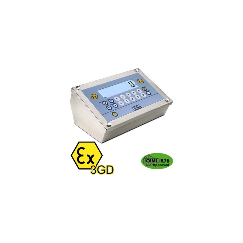 | DFWATEX3GDB | ATEX 3GD indicator, to be combined always with BP6ESTATEX3GD option. IP68 stainless steel case, 17-key keypad, LCD backlit display, and standard weighing programme. Protection: ATEX II 3G Ex nR IIC T6 Gc X for gases and ATEX II 3D Ex tc IIIC T130°C Dc IP68 X for dust. Complete with manual and ATEX CE Conformity declaration, available in EN, DE, FR, and IT. |